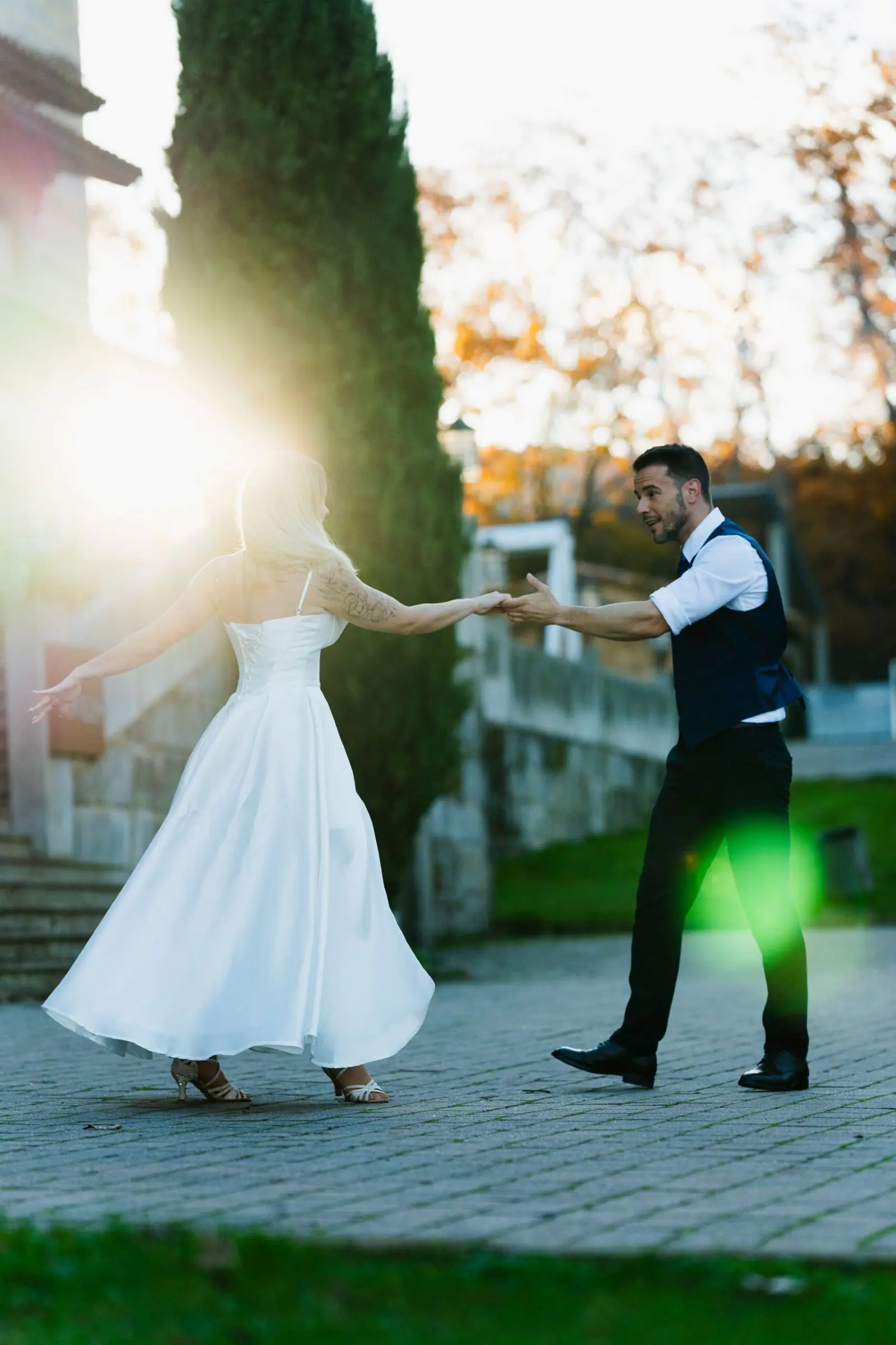 La mayoría de bailes de boda suelen durar entre dos y 3 minutos. Es un tiempo suficiente para crear un momento bonito sin que se haga largo. Si quueréis incluir sorpresa, cambios de ritmo o varias canciones, se puede adaptar la duración para que el resultado siga siendo dinámico.